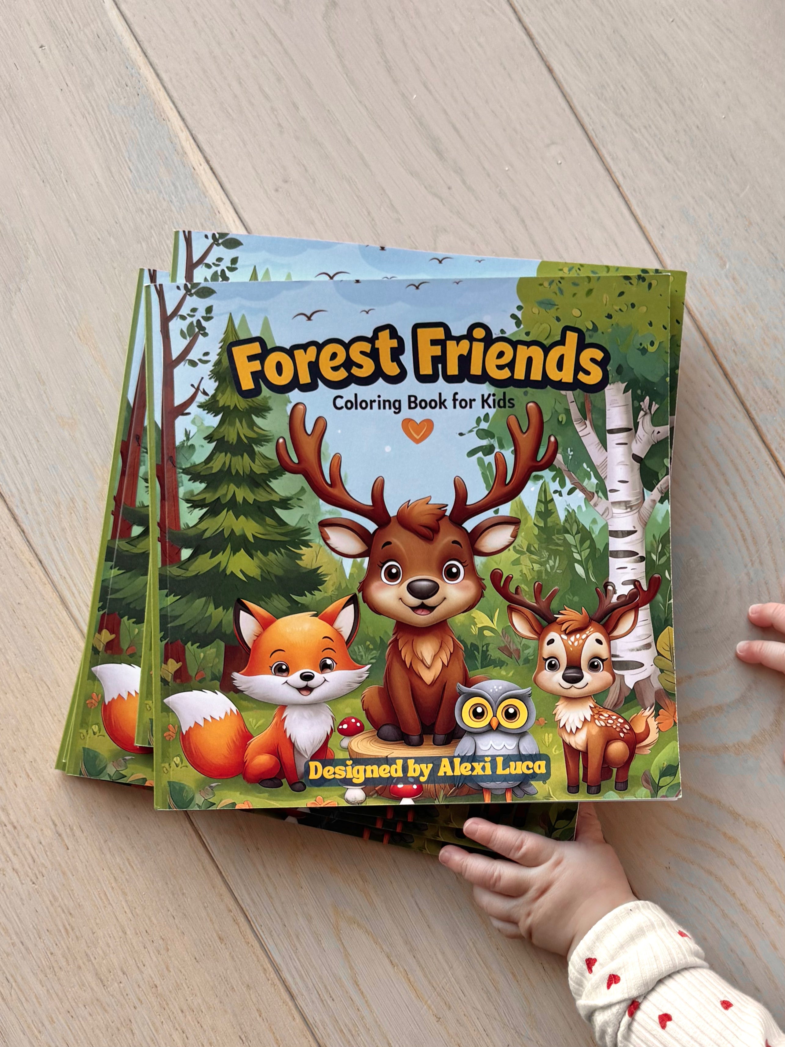Forest Friends: Coloring Book for Kids är vår allra första bok och grunden till allt vi gör. En handritad målarbok för barn 2–5 år, skapad med fokus på lekfullhet, enkelhet och kreativitet. De vänliga skogsdjuren och tydliga formerna är utformade för små händer och stora fantasier – och speglar vår kärlek till illustration, natur och barnens värld.